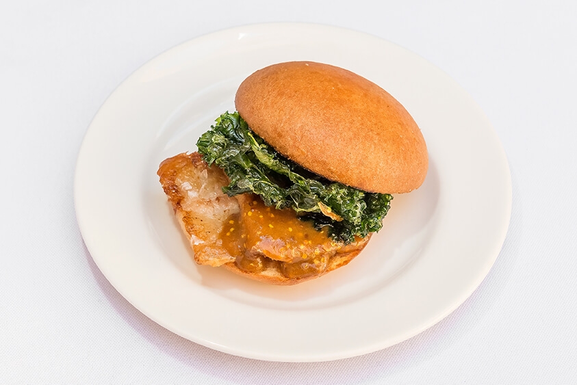 Mos de papada ibèrica a baixa temperatura amb salsa de mostassa i cruixent de col kale.