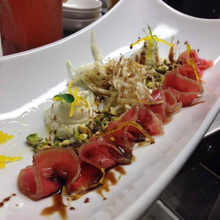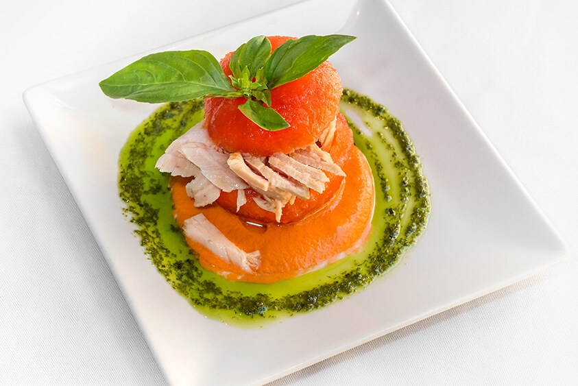 "Montadito" de tomàquet de cabrera amb bonítol.