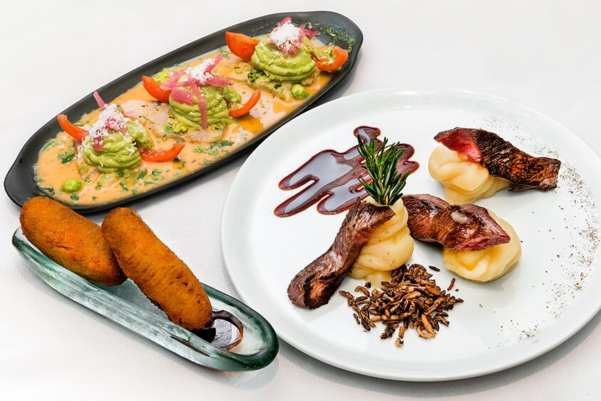 - Montadito de tomàquet i bonítol.- Ceviche.- Croqueta de pernil.- Arròs negre.- Brinsa.
