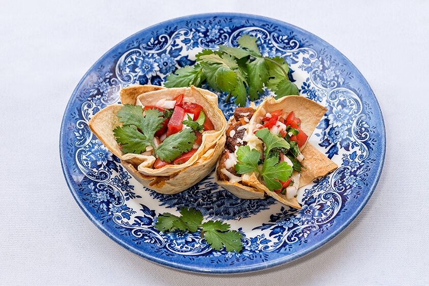 "Taco" deconstruďt en forma de muffin amb llimonada casolana o sidra.