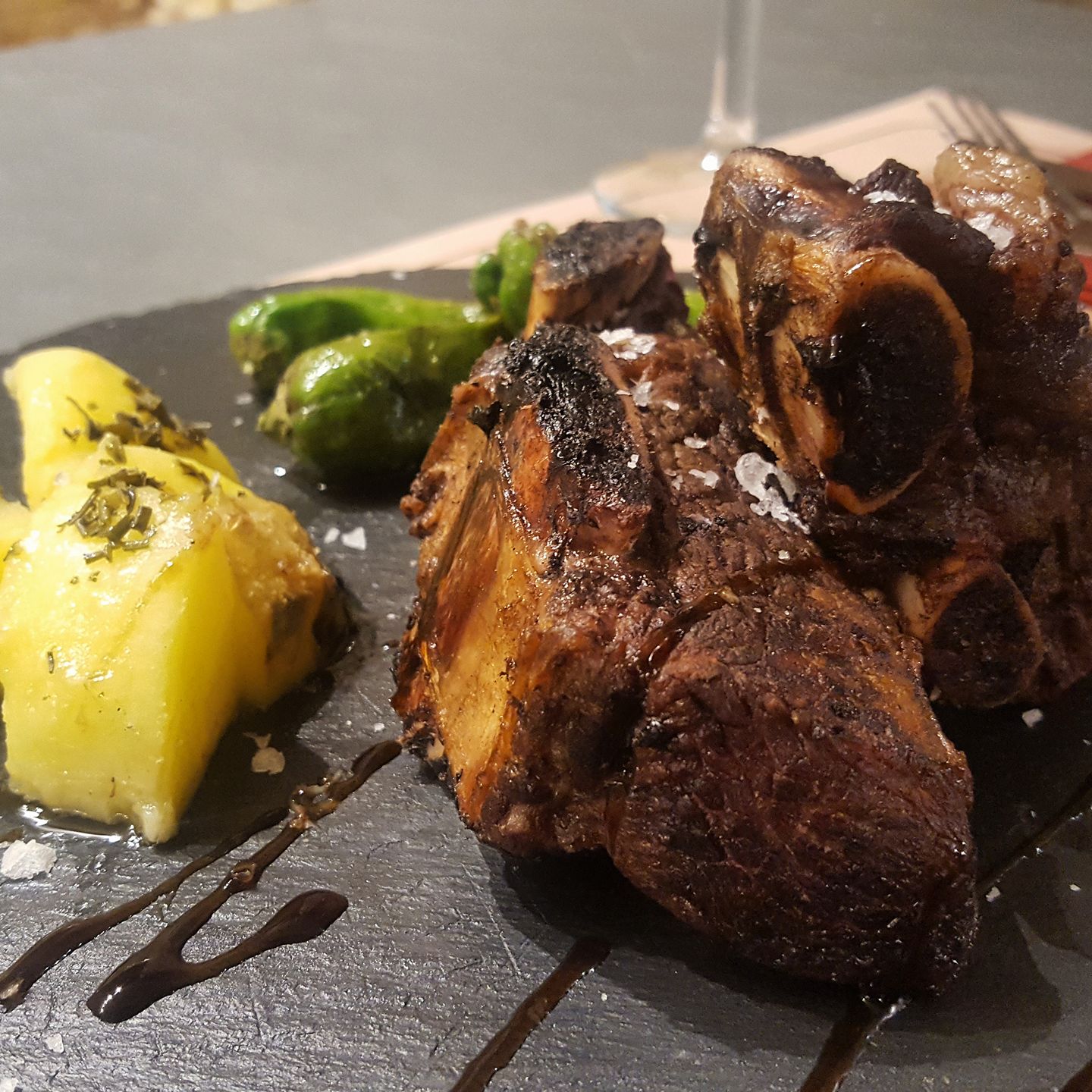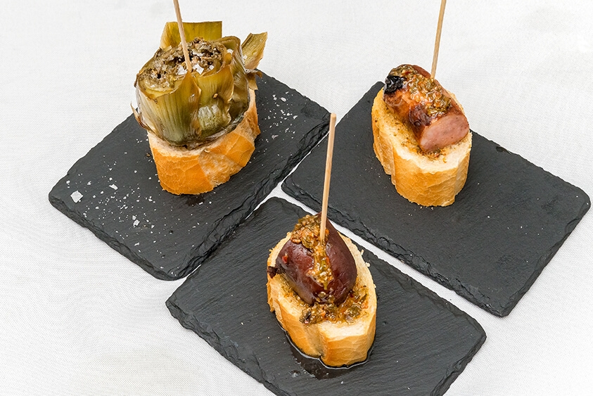 Cors de carxofa confitada i després portades a les brases i el típic xoriço crioll i botifarra que mai pot faltar en un bon rostit.